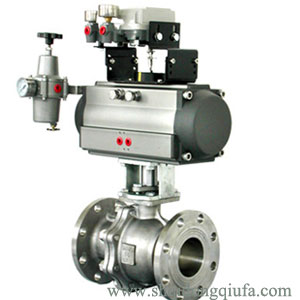 氣動(dòng)V型球閥的關(guān)閉件是半球體上開(kāi)有V字型開(kāi)口,V型開(kāi)口具有鋒利的刃口,在球體回轉(zhuǎn)過(guò)程中,關(guān)閉件之間有擦拭作用,對(duì)介質(zhì)具有強(qiáng)有力的切斷力,球體的V型開(kāi)口與閥座流道形成一個(gè)扇形區(qū)域,在回轉(zhuǎn)過(guò)程中可改變流道截面積,形成對(duì)介質(zhì)的精確調(diào)節(jié)